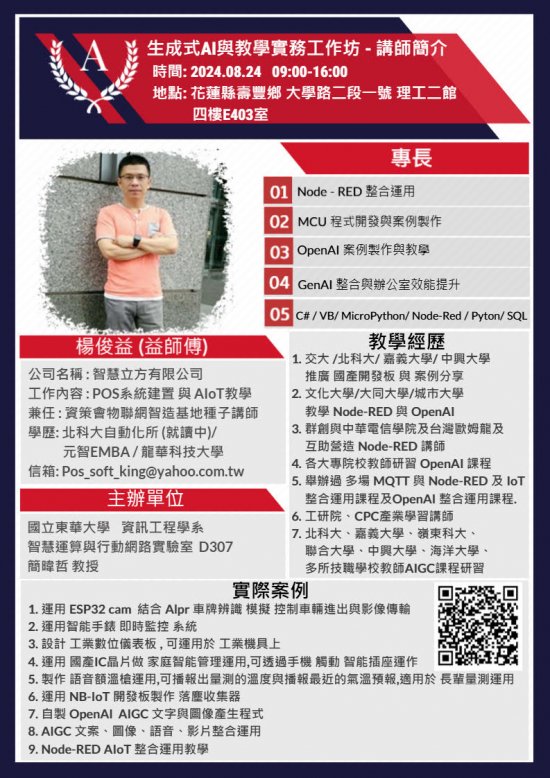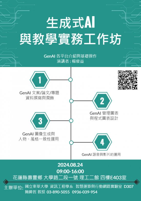 東華大學舉辦113年精進特色師培計畫—「生成式AI與教學實務工作坊-Made with DesignCap」,敬邀花東地區中小學教師報名參加。
